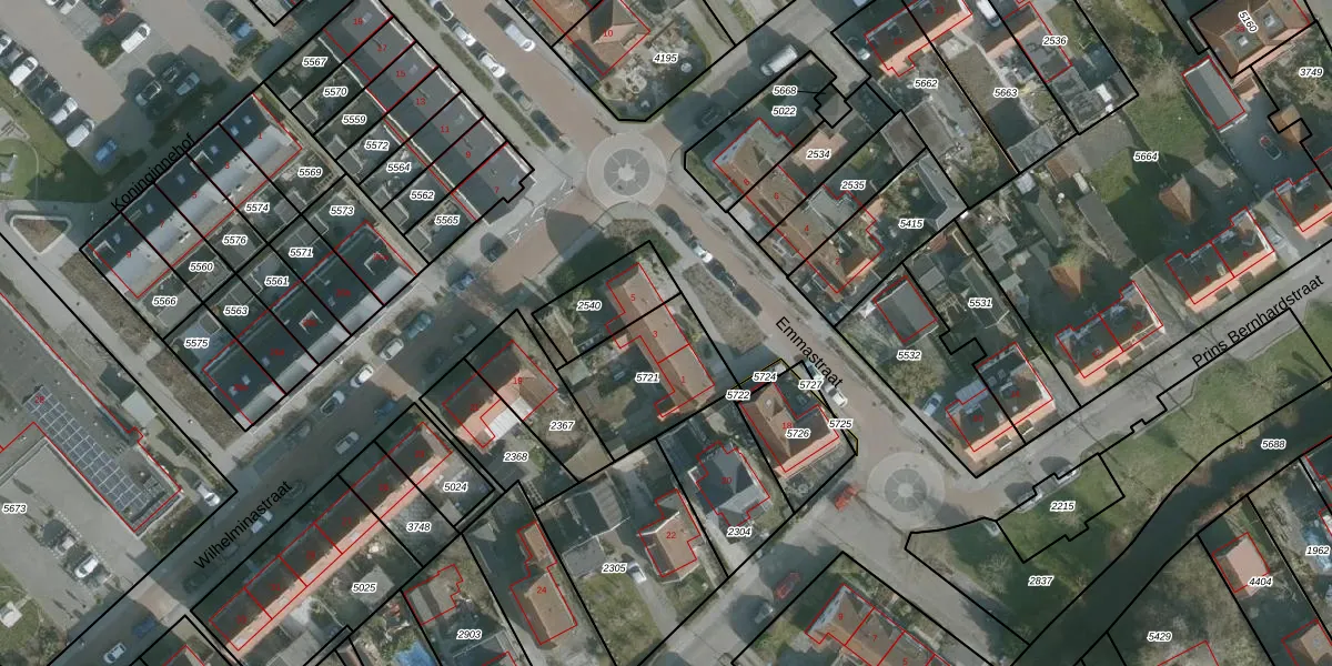 Het perceel waarop Emmastraat 3 staat heeft een oppervlakte van 363 m². Dit is een groot perceel. De perceeloppervlakte wordt geregistreerd door het Kadaster. Gedetailleerde informatie over de maten van dit perceel kunt u vinden in het rapport Kadastrale kaart met maatvoering van Emmastraat 3.