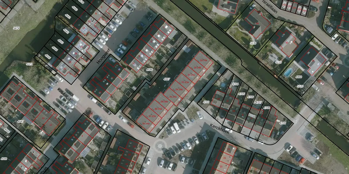 Kerckhoek 24-a is gelegen op kadastraal perceel ZLD01B4997. Deze kadastrale aanduiding is uniek en wordt gebruikt door het Kadaster om eigendomsrechten en andere zakelijke rechten vast te leggen. Het perceel maakt onderdeel uit van de kadastrale gemeente Zuidland.