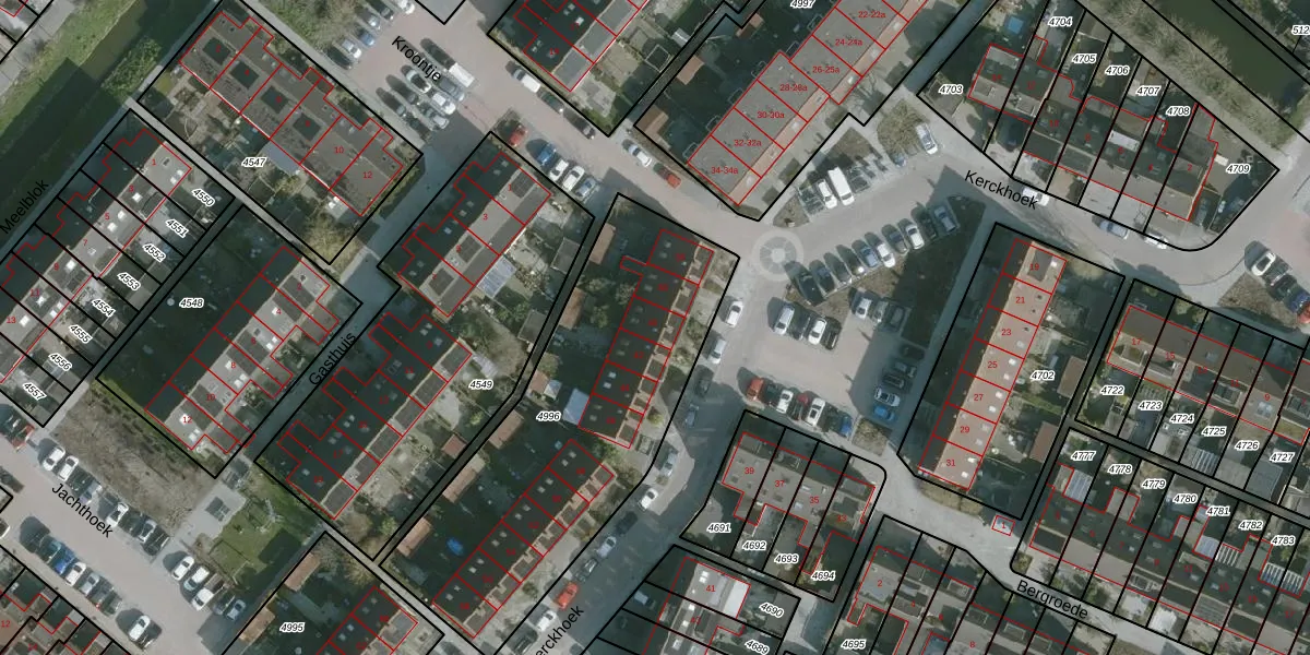 Kerckhoek 40 is gelegen op kadastraal perceel ZLD01B4996. Deze kadastrale aanduiding is uniek en wordt gebruikt door het Kadaster om eigendomsrechten en andere zakelijke rechten vast te leggen. Het perceel maakt onderdeel uit van de kadastrale gemeente Zuidland.