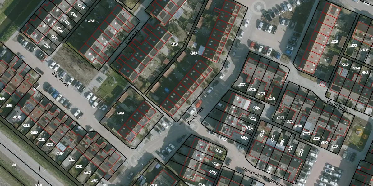 Kerckhoek 54 is gelegen op kadastraal perceel ZLD01B4996. Deze kadastrale aanduiding is uniek en wordt gebruikt door het Kadaster om eigendomsrechten en andere zakelijke rechten vast te leggen. Het perceel maakt onderdeel uit van de kadastrale gemeente Zuidland.