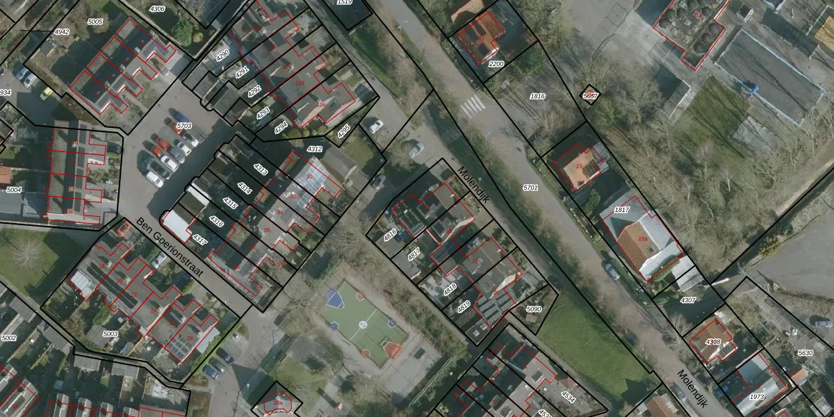 Het perceel waarop Molendijk 14 staat heeft een oppervlakte van 259 m². Dit is een middelgroot perceel. De perceeloppervlakte wordt geregistreerd door het Kadaster. Gedetailleerde informatie over de maten van dit perceel kunt u vinden in het rapport Kadastrale kaart met maatvoering van Molendijk 14.