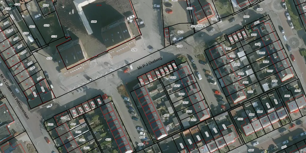 Het perceel waarop Mr P J Oudweg 13-f staat heeft een oppervlakte van 42 m². Dit is een klein perceel. De perceeloppervlakte wordt geregistreerd door het Kadaster. Gedetailleerde informatie over de maten van dit perceel kunt u vinden in het rapport Kadastrale kaart met maatvoering van Mr P J Oudweg 13-f.