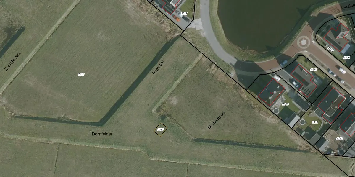 Het perceel waarop Muscaat 15 staat heeft een oppervlakte van 2,5 ha. Dit is een zeer groot perceel. De perceeloppervlakte wordt geregistreerd door het Kadaster. Gedetailleerde informatie over de maten van dit perceel kunt u vinden in het rapport Kadastrale kaart met maatvoering van Muscaat 15.