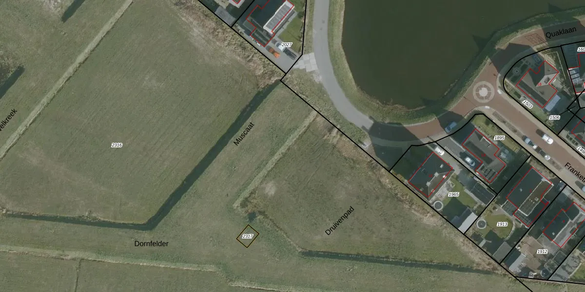 Het perceel waarop Muscaat 9 staat heeft een oppervlakte van 2,5 ha. Dit is een zeer groot perceel. De perceeloppervlakte wordt geregistreerd door het Kadaster. Gedetailleerde informatie over de maten van dit perceel kunt u vinden in het rapport Kadastrale kaart met maatvoering van Muscaat 9.