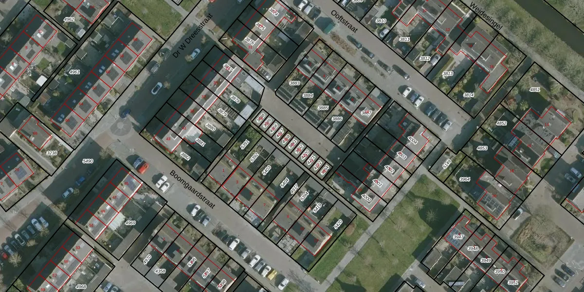 Gebruik de zoekbalk of klik op een perceel voor informatie over de adressen binnen dit perceel.