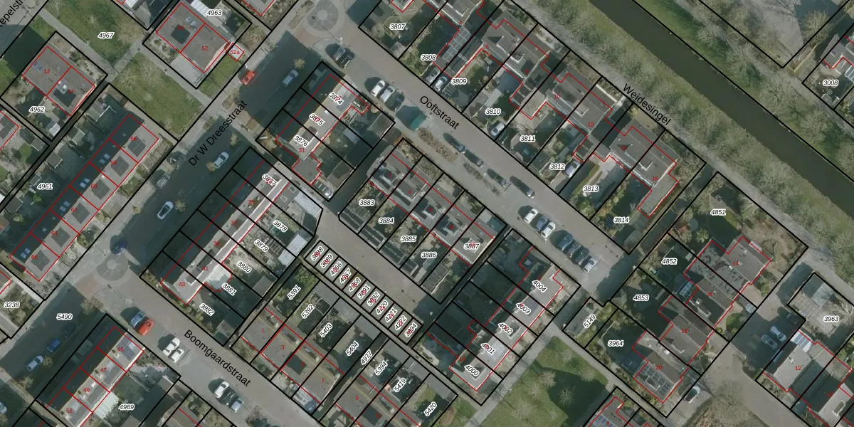 Gebruik de zoekbalk of klik op een perceel voor informatie over de adressen binnen dit perceel.