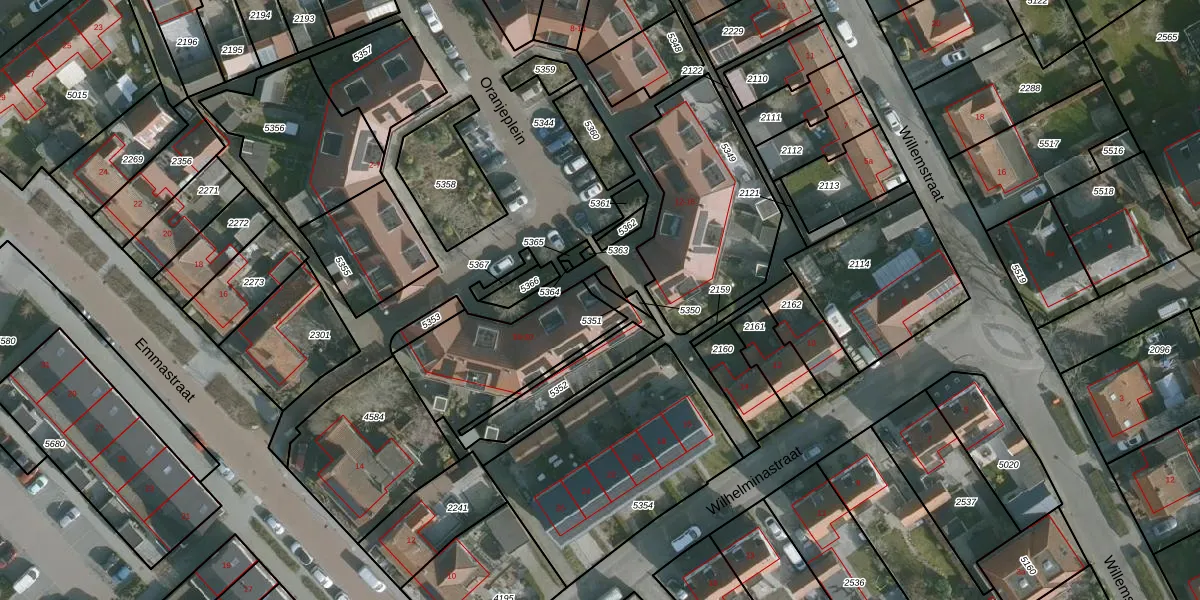 Het perceel waarop Oranjeplein 16 staat heeft een oppervlakte van 615 m². Dit is een groot perceel. De perceeloppervlakte wordt geregistreerd door het Kadaster. Gedetailleerde informatie over de maten van dit perceel kunt u vinden in het rapport Kadastrale kaart met maatvoering van Oranjeplein 16.