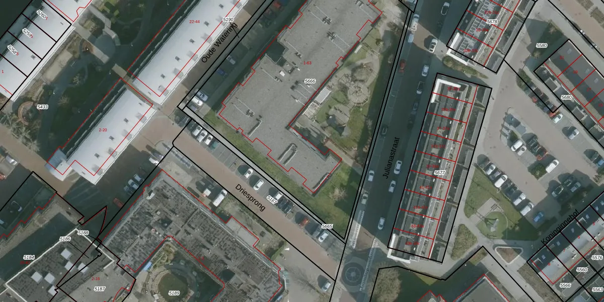 Oude Watering 21 is gelegen op kadastraal perceel ZLD01B5666. Deze kadastrale aanduiding is uniek en wordt gebruikt door het Kadaster om eigendomsrechten en andere zakelijke rechten vast te leggen. Het perceel maakt onderdeel uit van de kadastrale gemeente Zuidland.