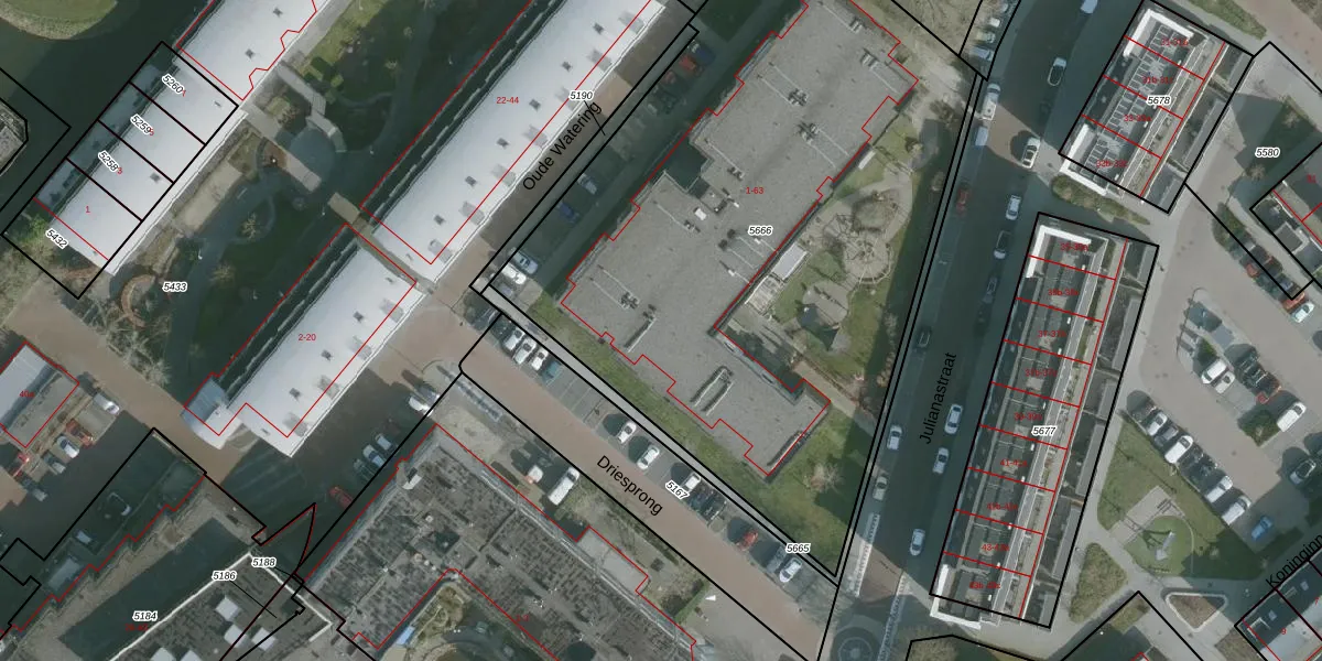Oude Watering 57 is gelegen op kadastraal perceel ZLD01B5666. Deze kadastrale aanduiding is uniek en wordt gebruikt door het Kadaster om eigendomsrechten en andere zakelijke rechten vast te leggen. Het perceel maakt onderdeel uit van de kadastrale gemeente Zuidland.