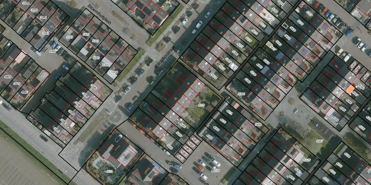 Het perceel waarop Paradijsstraat 27 staat heeft een oppervlakte van 714 m². Dit is een groot perceel. De perceeloppervlakte wordt geregistreerd door het Kadaster. Gedetailleerde informatie over de maten van dit perceel kunt u vinden in het rapport Kadastrale kaart met maatvoering van Paradijsstraat 27.