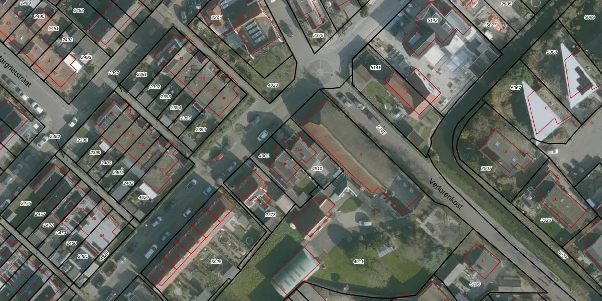 Gebruik de zoekbalk of klik op een perceel voor informatie over de adressen binnen dit perceel.