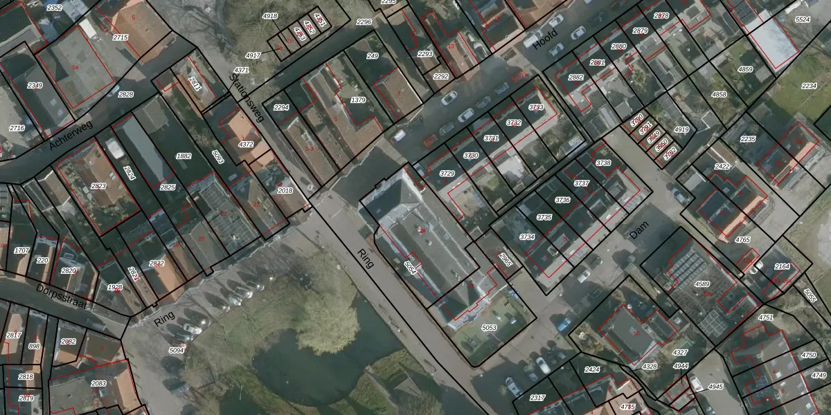 Het perceel waarop Ring 24 staat heeft een oppervlakte van 538 m². Dit is een groot perceel. De perceeloppervlakte wordt geregistreerd door het Kadaster. Gedetailleerde informatie over de maten van dit perceel kunt u vinden in het rapport Kadastrale kaart met maatvoering van Ring 24.
