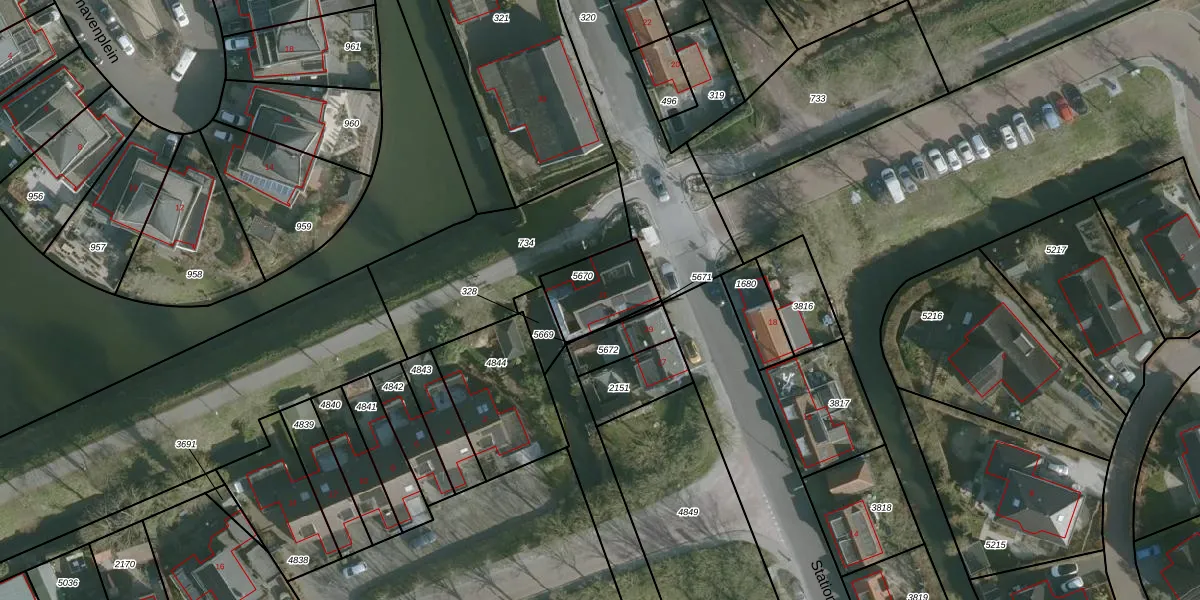 Gebruik de zoekbalk of klik op een perceel voor informatie over de adressen binnen dit perceel.