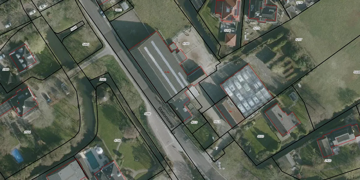 Het perceel waarop Stationsweg 4 staat heeft een oppervlakte van 2415 m². Dit is een zeer groot perceel. De perceeloppervlakte wordt geregistreerd door het Kadaster. Gedetailleerde informatie over de maten van dit perceel kunt u vinden in het rapport Kadastrale kaart met maatvoering van Stationsweg 4.