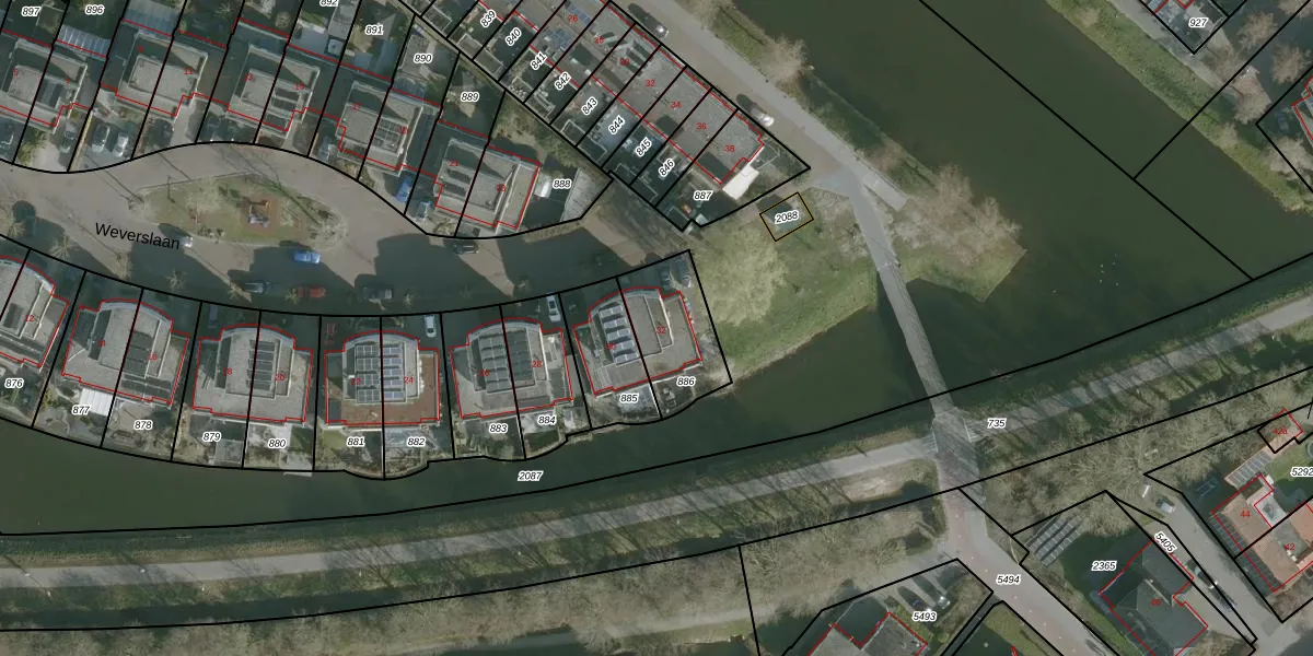 Weverslaan 32 is gelegen op kadastraal perceel BNS04B886. Deze kadastrale aanduiding is uniek en wordt gebruikt door het Kadaster om eigendomsrechten en andere zakelijke rechten vast te leggen. Het perceel maakt onderdeel uit van de kadastrale gemeente Bernisse.