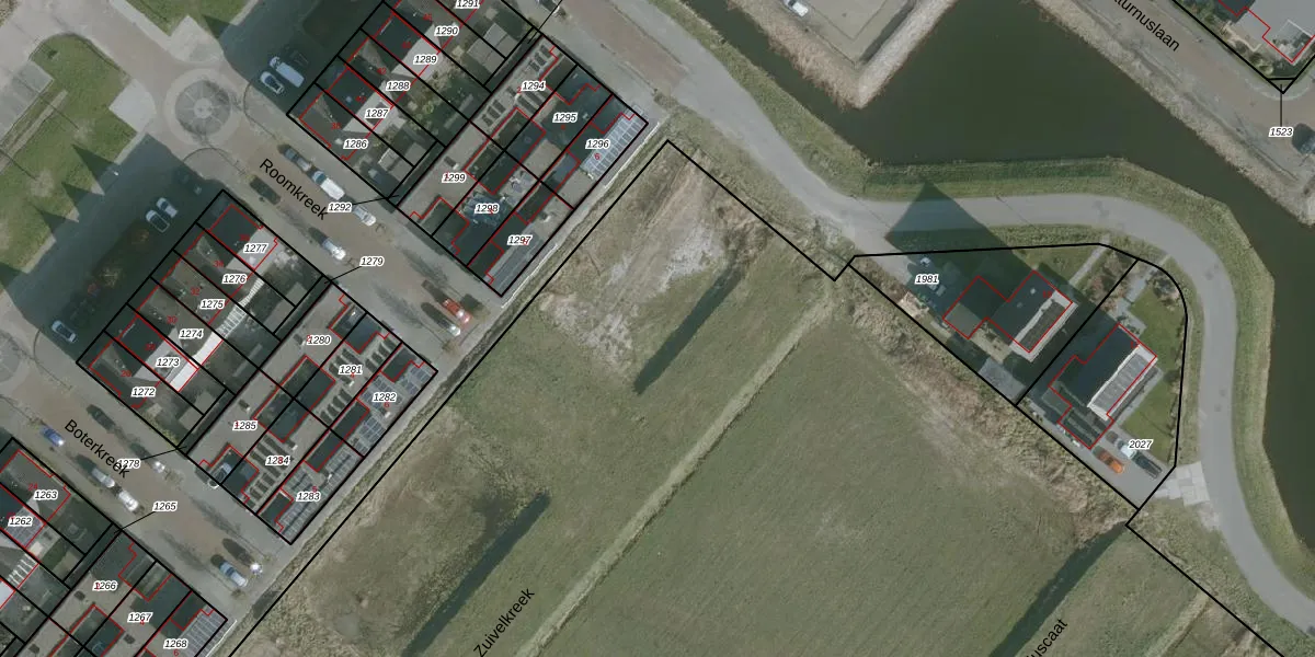 Het perceel waarop Zuivelkreek 8 staat heeft een oppervlakte van 2,5 ha. Dit is een zeer groot perceel. De perceeloppervlakte wordt geregistreerd door het Kadaster. Gedetailleerde informatie over de maten van dit perceel kunt u vinden in het rapport Kadastrale kaart met maatvoering van Zuivelkreek 8.