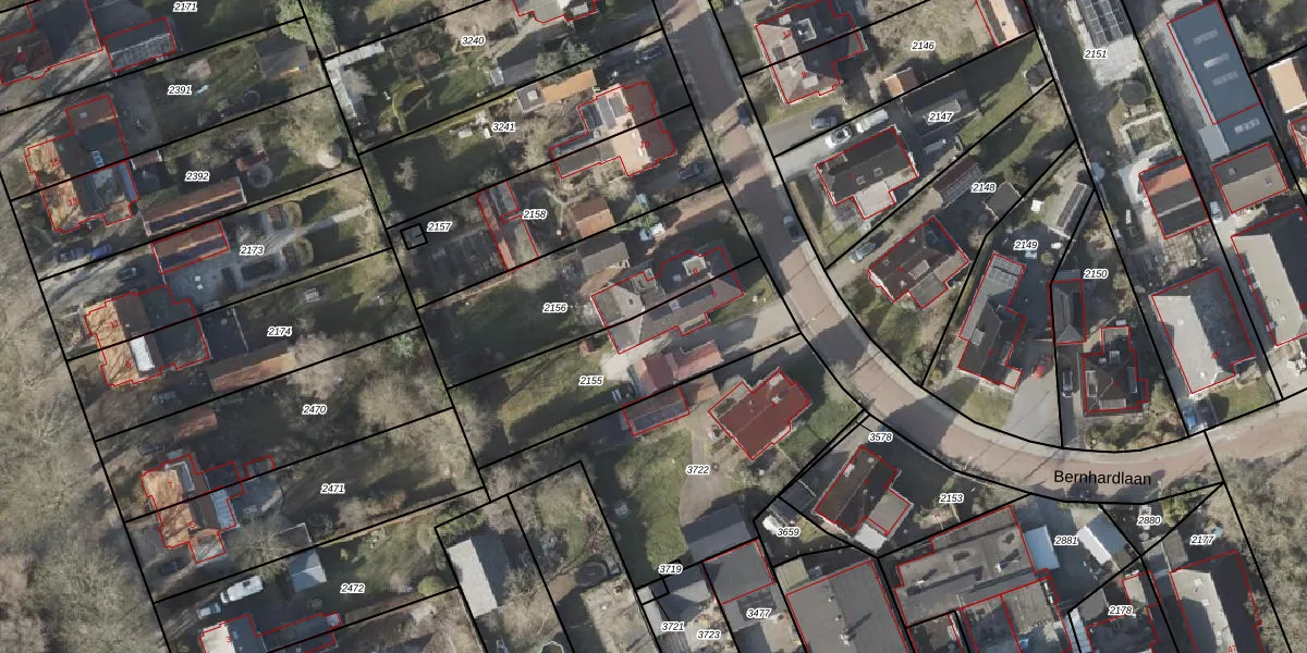 Het perceel waarop Bernhardlaan 6 staat heeft een oppervlakte van 705 m². Dit is een groot perceel. De perceeloppervlakte wordt geregistreerd door het Kadaster. Gedetailleerde informatie over de maten van dit perceel kunt u vinden in het rapport Kadastrale kaart met maatvoering van Bernhardlaan 6.