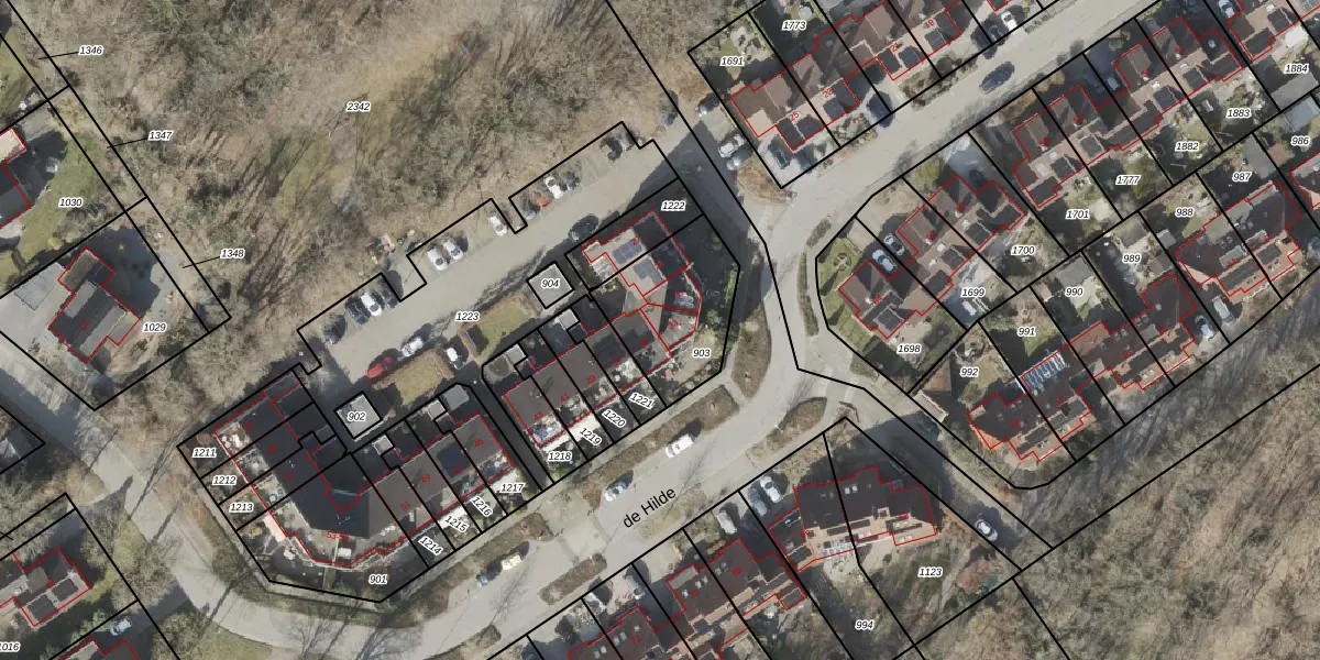 Het perceel waarop de Hilde 33 staat heeft een oppervlakte van 381 m². Dit is een groot perceel. De perceeloppervlakte wordt geregistreerd door het Kadaster. Gedetailleerde informatie over de maten van dit perceel kunt u vinden in het rapport Kadastrale kaart met maatvoering van de Hilde 33.