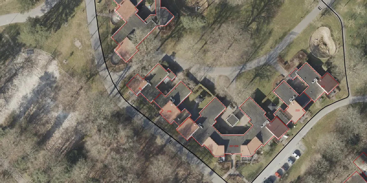 Het perceel waarop E 206 staat heeft een oppervlakte van 4,6 ha. Dit is een zeer groot perceel. De perceeloppervlakte wordt geregistreerd door het Kadaster. Gedetailleerde informatie over de maten van dit perceel kunt u vinden in het rapport Kadastrale kaart met maatvoering van E 206.