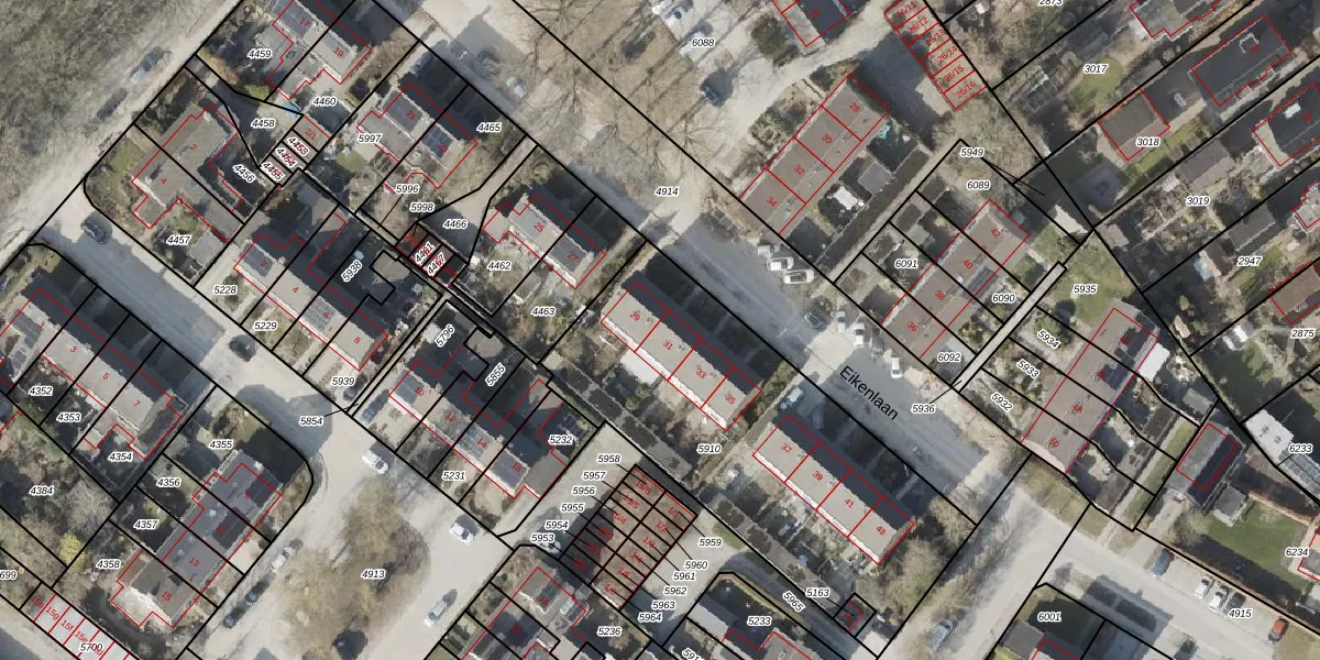 Eikenlaan 31 is gelegen op kadastraal perceel ZLR00G5910. Deze kadastrale aanduiding is uniek en wordt gebruikt door het Kadaster om eigendomsrechten en andere zakelijke rechten vast te leggen. Het perceel maakt onderdeel uit van de kadastrale gemeente Zuidlaren.