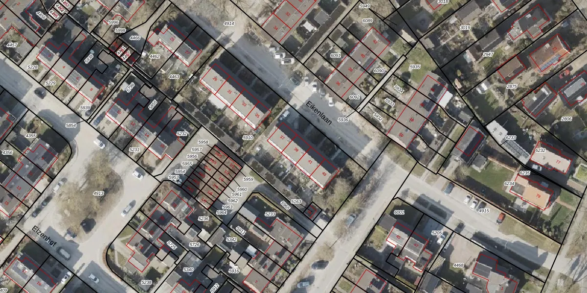 Eikenlaan 39 is gelegen op kadastraal perceel ZLR00G5910. Deze kadastrale aanduiding is uniek en wordt gebruikt door het Kadaster om eigendomsrechten en andere zakelijke rechten vast te leggen. Het perceel maakt onderdeel uit van de kadastrale gemeente Zuidlaren.