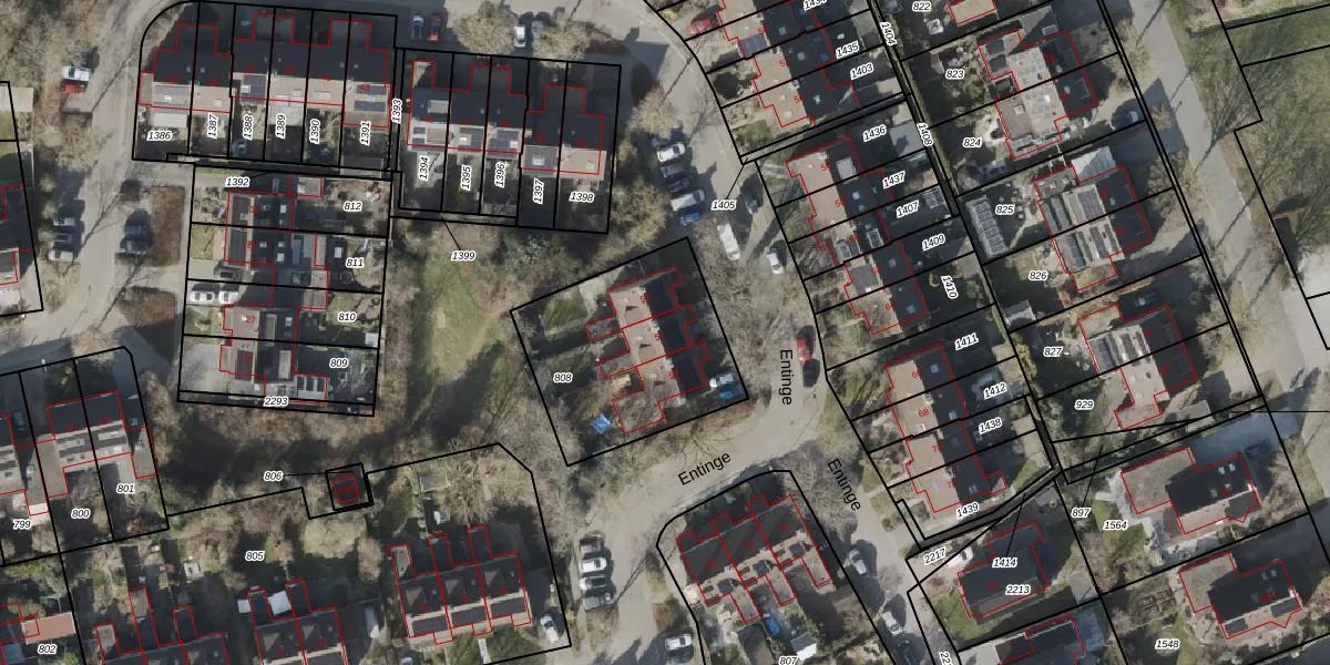 Het perceel waarop Entinge 57 staat heeft een oppervlakte van 735 m². Dit is een groot perceel. De perceeloppervlakte wordt geregistreerd door het Kadaster. Gedetailleerde informatie over de maten van dit perceel kunt u vinden in het rapport Kadastrale kaart met maatvoering van Entinge 57.