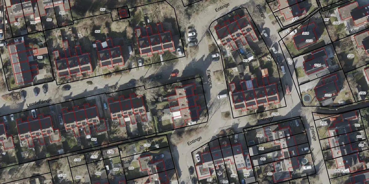Het perceel waarop Entinge 61 staat heeft een oppervlakte van 3314 m². Dit is een zeer groot perceel. De perceeloppervlakte wordt geregistreerd door het Kadaster. Gedetailleerde informatie over de maten van dit perceel kunt u vinden in het rapport Kadastrale kaart met maatvoering van Entinge 61.