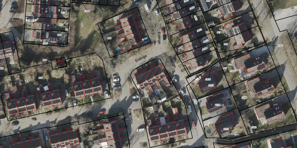 Het perceel waarop Entinge 76 staat heeft een oppervlakte van 1481 m². Dit is een zeer groot perceel. De perceeloppervlakte wordt geregistreerd door het Kadaster. Gedetailleerde informatie over de maten van dit perceel kunt u vinden in het rapport Kadastrale kaart met maatvoering van Entinge 76.