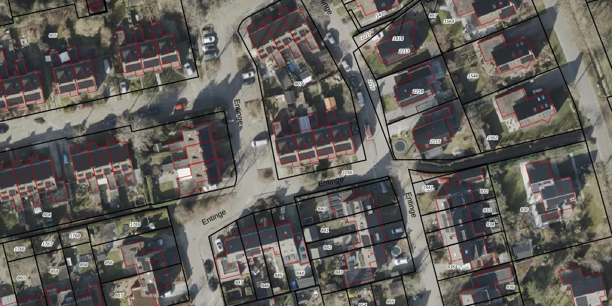 Het perceel waarop Entinge 82 staat heeft een oppervlakte van 1481 m². Dit is een zeer groot perceel. De perceeloppervlakte wordt geregistreerd door het Kadaster. Gedetailleerde informatie over de maten van dit perceel kunt u vinden in het rapport Kadastrale kaart met maatvoering van Entinge 82.