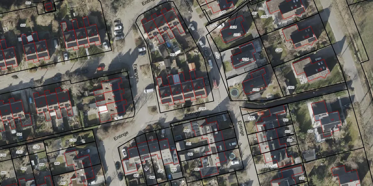Het perceel waarop Entinge 84 staat heeft een oppervlakte van 1481 m². Dit is een zeer groot perceel. De perceeloppervlakte wordt geregistreerd door het Kadaster. Gedetailleerde informatie over de maten van dit perceel kunt u vinden in het rapport Kadastrale kaart met maatvoering van Entinge 84.