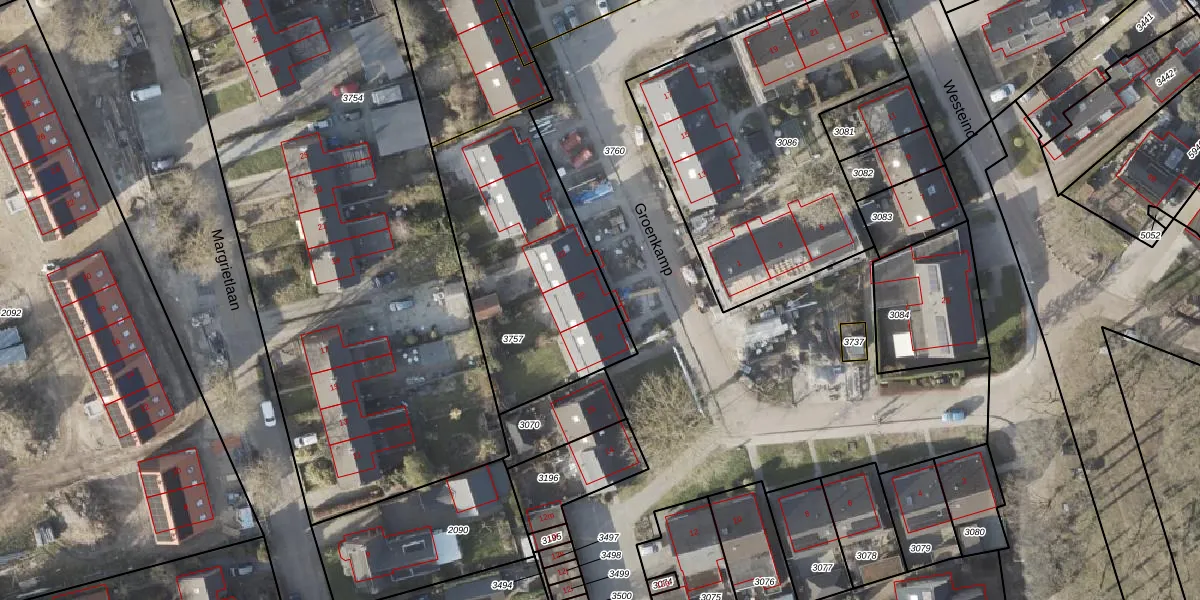 Het perceel waarop Groenkamp 20 staat heeft een oppervlakte van 963 m². Dit is een groot perceel. De perceeloppervlakte wordt geregistreerd door het Kadaster. Gedetailleerde informatie over de maten van dit perceel kunt u vinden in het rapport Kadastrale kaart met maatvoering van Groenkamp 20.
