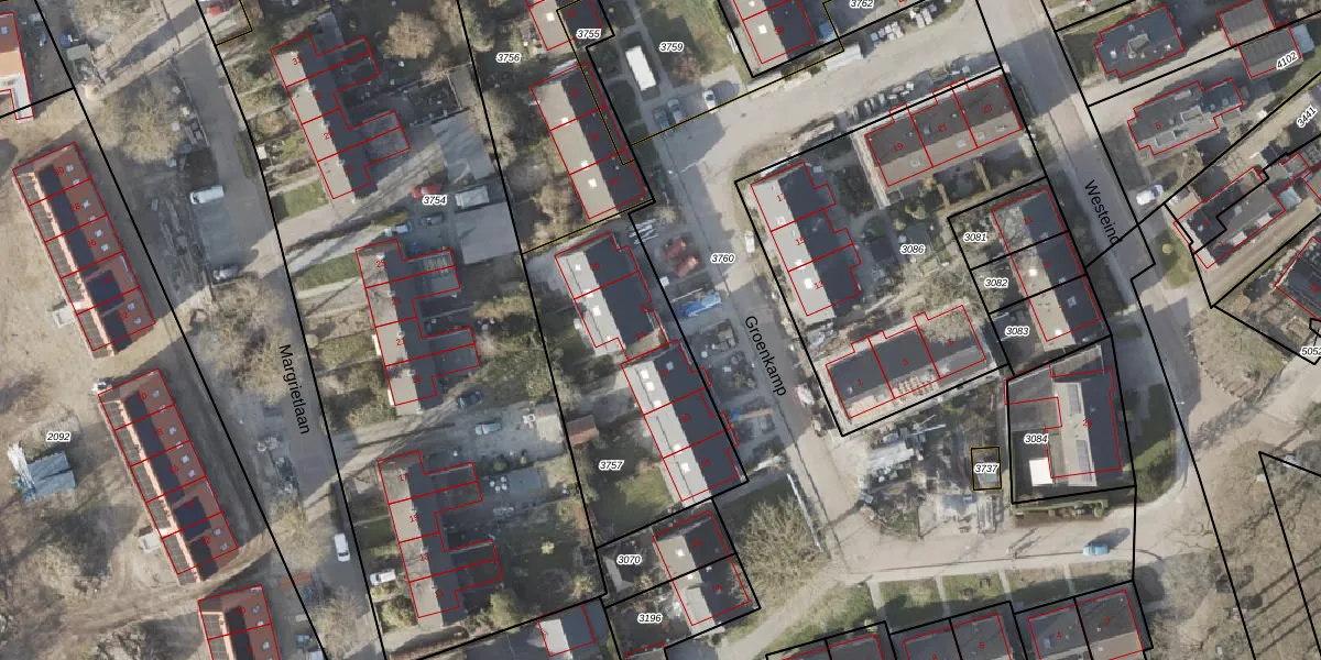 Het perceel waarop Groenkamp 24 staat heeft een oppervlakte van 963 m². Dit is een groot perceel. De perceeloppervlakte wordt geregistreerd door het Kadaster. Gedetailleerde informatie over de maten van dit perceel kunt u vinden in het rapport Kadastrale kaart met maatvoering van Groenkamp 24.