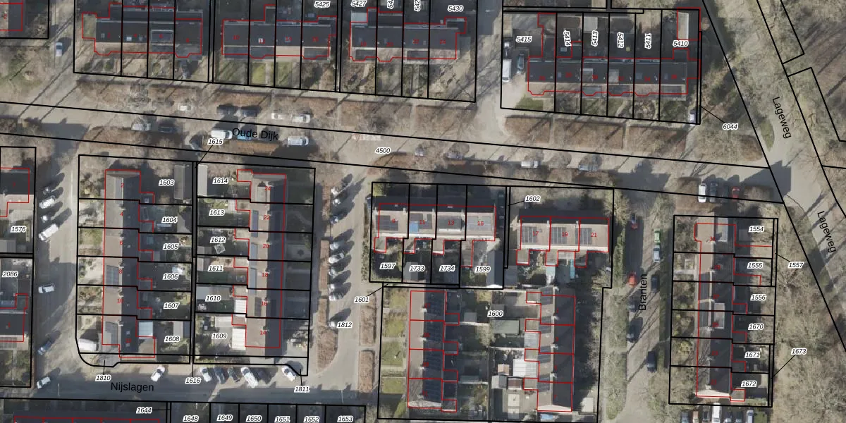 Gebruik de zoekbalk of klik op een perceel voor informatie over de adressen binnen dit perceel.