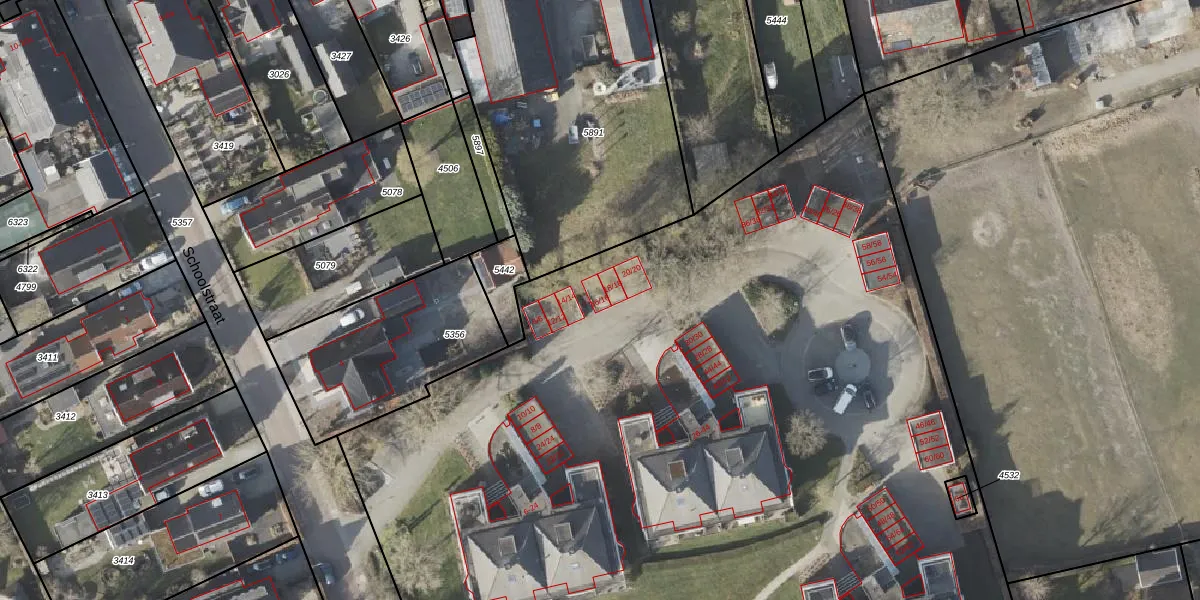 Het perceel waarop Schoolstraat 16-16 staat heeft een oppervlakte van 9490 m². Dit is een zeer groot perceel. De perceeloppervlakte wordt geregistreerd door het Kadaster. Gedetailleerde informatie over de maten van dit perceel kunt u vinden in het rapport Kadastrale kaart met maatvoering van Schoolstraat 16-16.