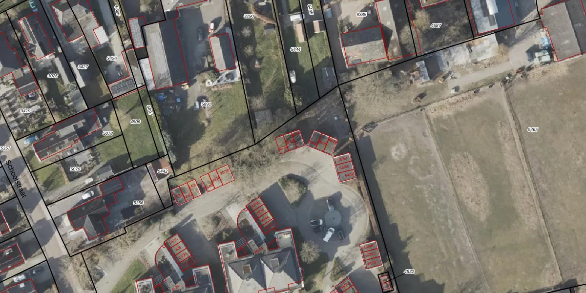 Het perceel waarop Schoolstraat 32-32 staat heeft een oppervlakte van 9490 m². Dit is een zeer groot perceel. De perceeloppervlakte wordt geregistreerd door het Kadaster. Gedetailleerde informatie over de maten van dit perceel kunt u vinden in het rapport Kadastrale kaart met maatvoering van Schoolstraat 32-32.