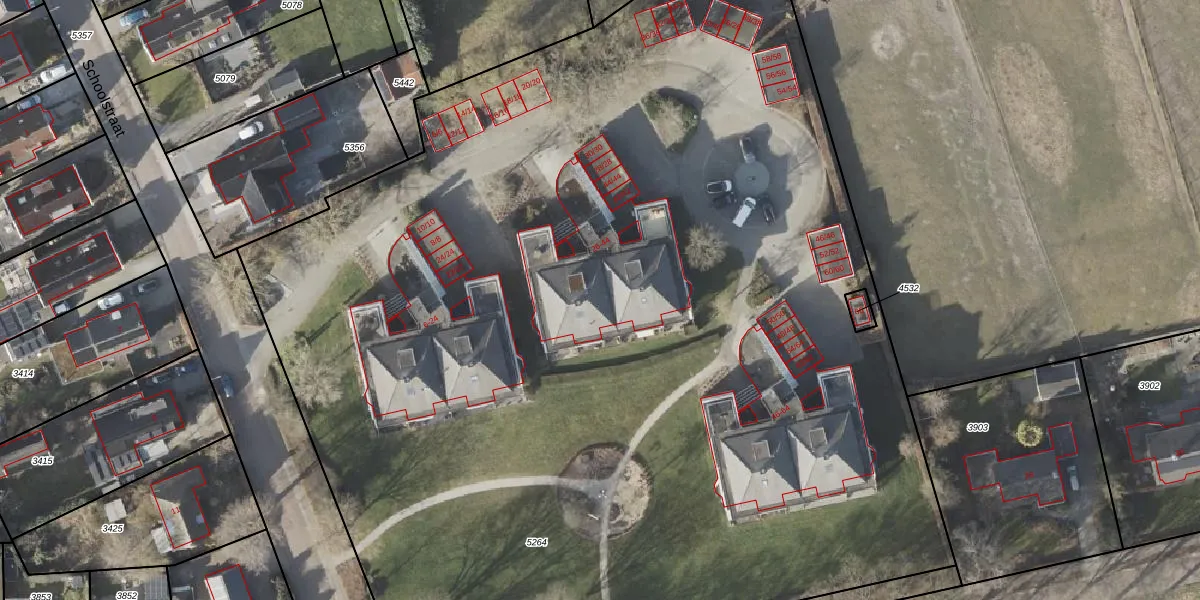 Het perceel waarop Schoolstraat 40 staat heeft een oppervlakte van 9490 m². Dit is een zeer groot perceel. De perceeloppervlakte wordt geregistreerd door het Kadaster. Gedetailleerde informatie over de maten van dit perceel kunt u vinden in het rapport Kadastrale kaart met maatvoering van Schoolstraat 40.