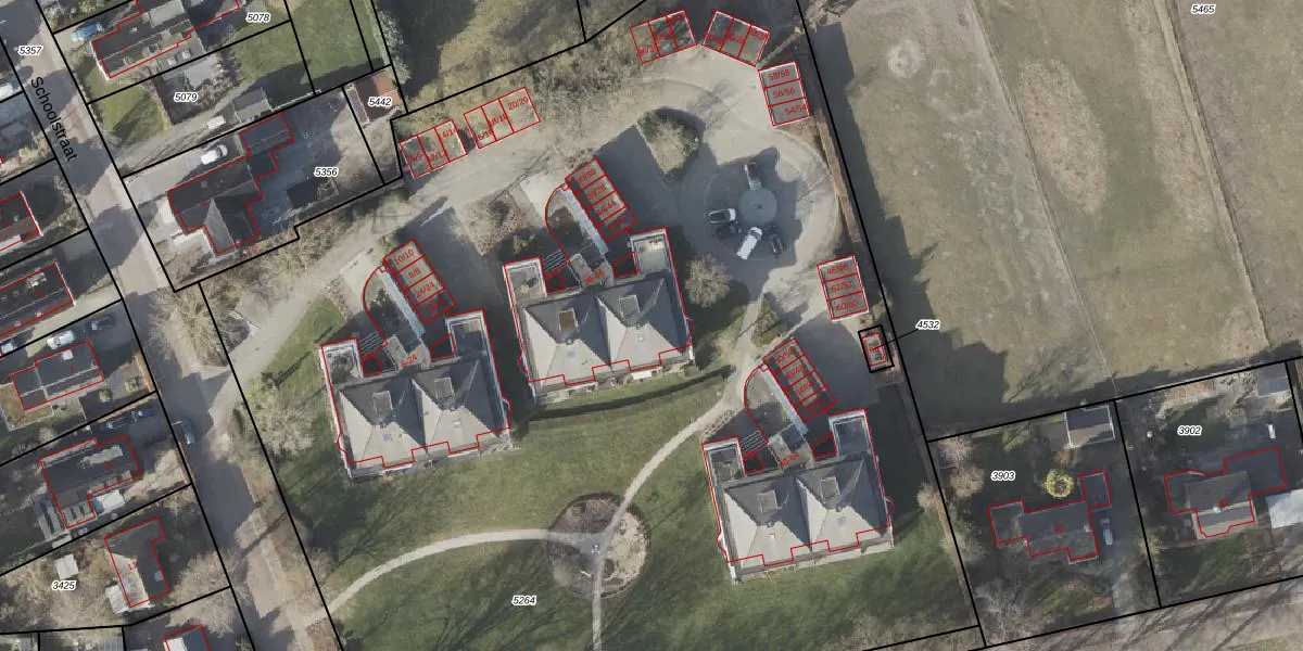 Het perceel waarop Schoolstraat 44 staat heeft een oppervlakte van 9490 m². Dit is een zeer groot perceel. De perceeloppervlakte wordt geregistreerd door het Kadaster. Gedetailleerde informatie over de maten van dit perceel kunt u vinden in het rapport Kadastrale kaart met maatvoering van Schoolstraat 44.