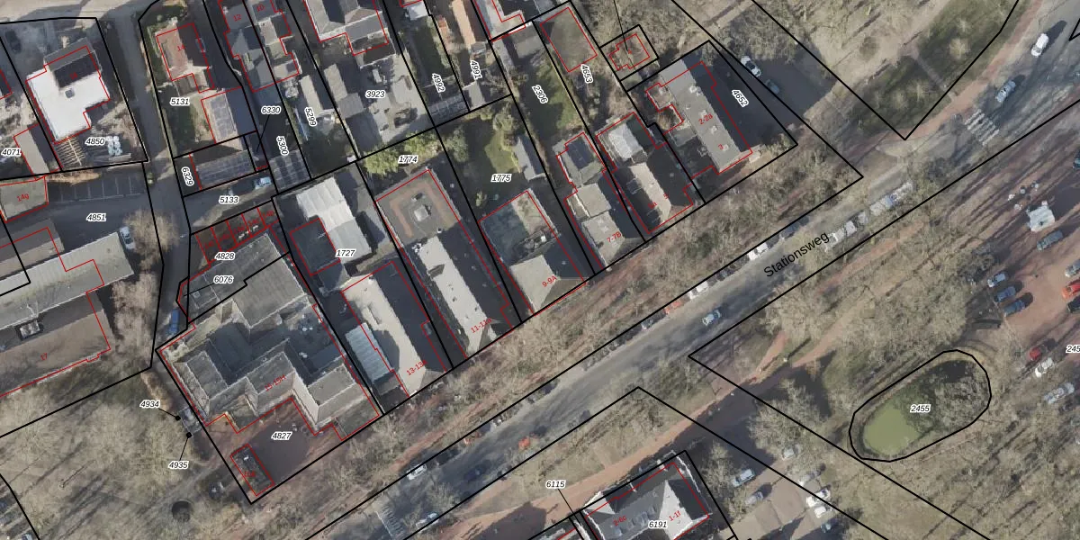 Het perceel waarop Stationsweg 9-A staat heeft een oppervlakte van 595 m². Dit is een groot perceel. De perceeloppervlakte wordt geregistreerd door het Kadaster. Gedetailleerde informatie over de maten van dit perceel kunt u vinden in het rapport Kadastrale kaart met maatvoering van Stationsweg 9-A.
