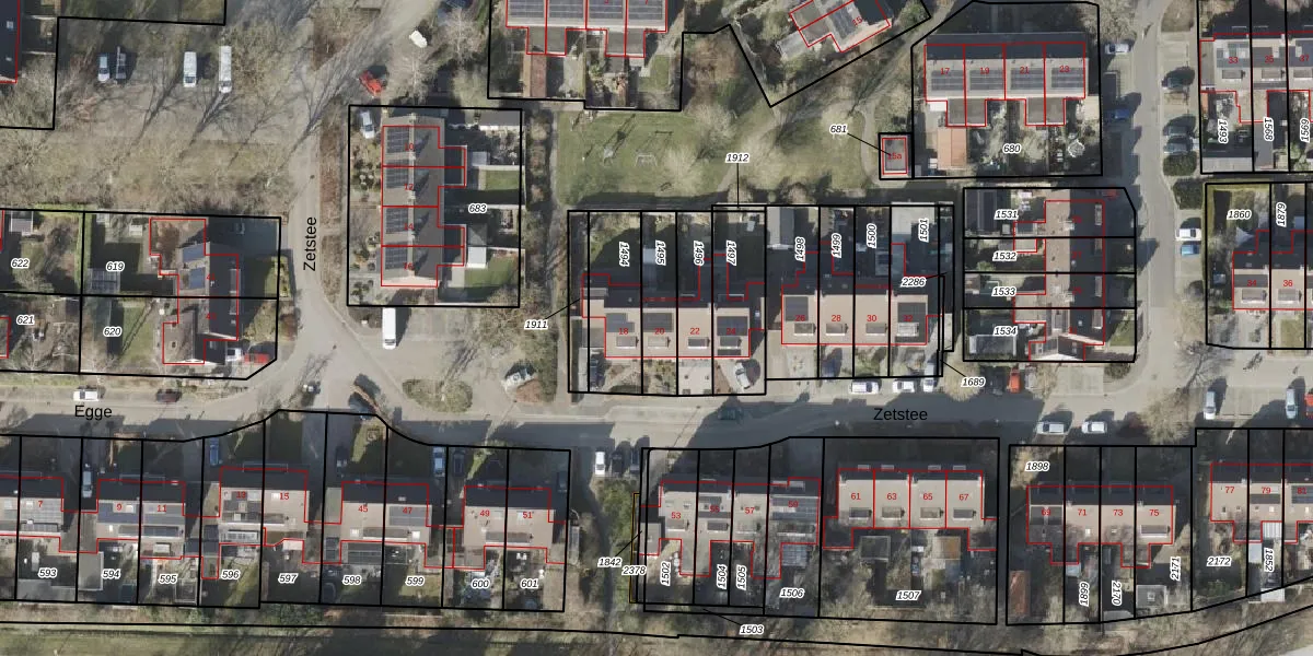 Gebruik de zoekbalk of klik op een perceel voor informatie over de adressen binnen dit perceel.