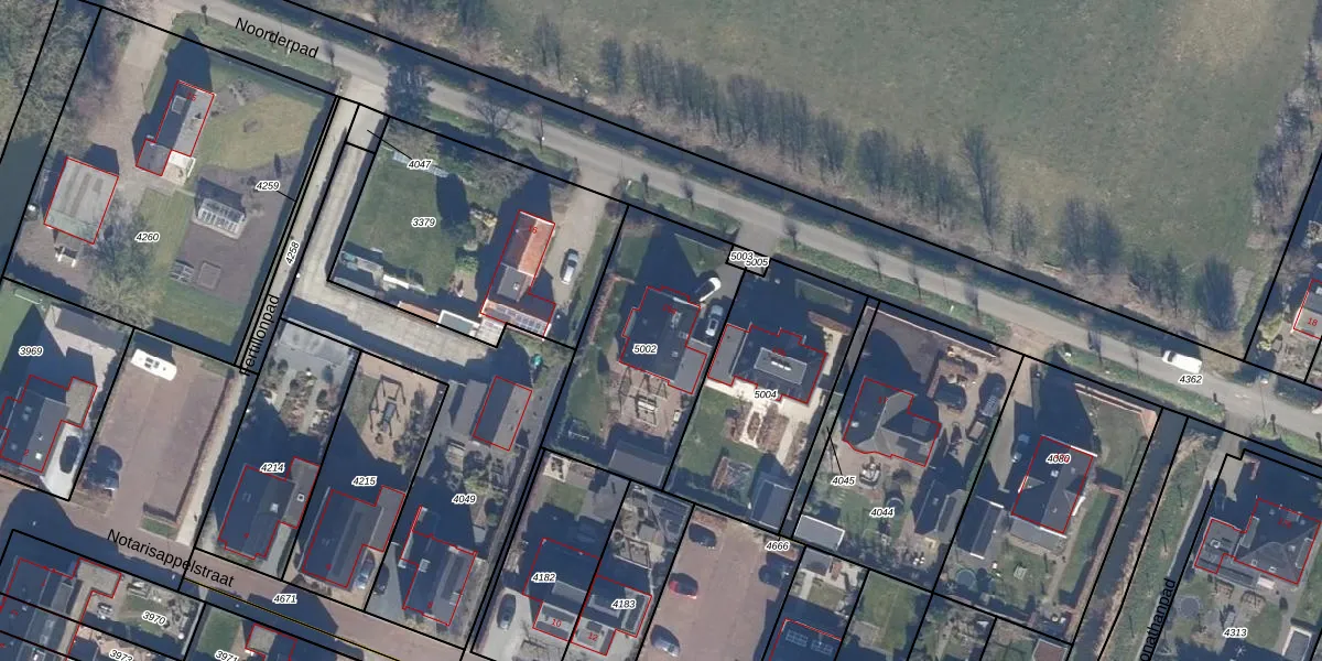 Het perceel waarop Noorderpad 16-a staat heeft een oppervlakte van 760 m². Dit is een groot perceel. De perceeloppervlakte wordt geregistreerd door het Kadaster. Gedetailleerde informatie over de maten van dit perceel kunt u vinden in het rapport Kadastrale kaart met maatvoering van Noorderpad 16-a.