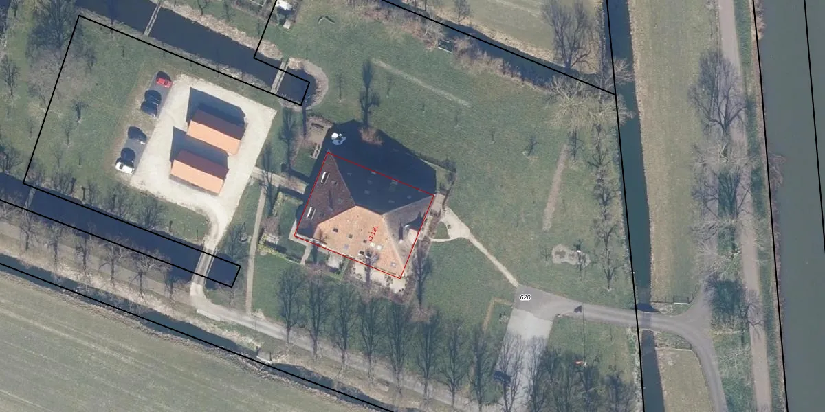 Het perceel waarop Oostdijk 13-c staat heeft een oppervlakte van 1,3 ha. Dit is een zeer groot perceel. De perceeloppervlakte wordt geregistreerd door het Kadaster. Gedetailleerde informatie over de maten van dit perceel kunt u vinden in het rapport Kadastrale kaart met maatvoering van Oostdijk 13-c.