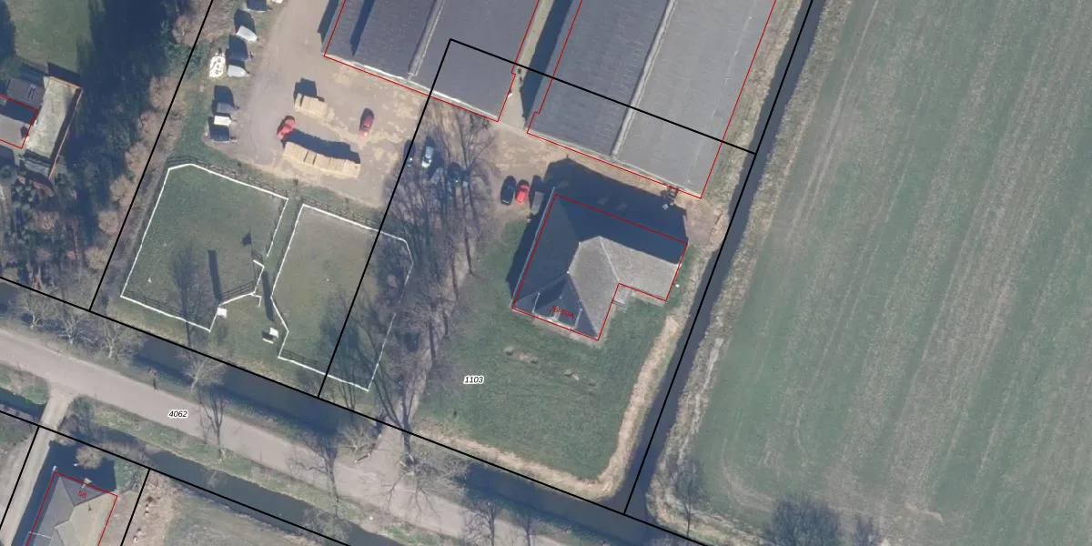 Het adres is gelegen op perceel 1103 in de sectie D en de kadastrale gemeente Beemster. De kadastrale aanduiding is aldus BSR00-D-1103. De gemiddelde perceelgrootte in Beemster is 1,1 ha. Dit perceel is kleiner: de perceeloppervlakte bedraagt 4200 m². Het kleinste perceel in de kadastrale gemeente is 0 m² groot. De grootste perceeloppervlakte is 56,4 ha. Op het perceel zijn 2 adressen aanwezig. De laatste wijziging in het de Basisregistratie Kadaster (BRK) was op 16-12-2002.