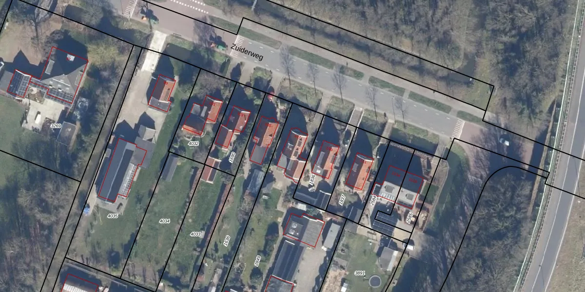 Het perceel waarop Zuiderweg 107 staat heeft een oppervlakte van 1870 m². Dit is een zeer groot perceel. De perceeloppervlakte wordt geregistreerd door het Kadaster. Gedetailleerde informatie over de maten van dit perceel kunt u vinden in het rapport Kadastrale kaart met maatvoering van Zuiderweg 107.