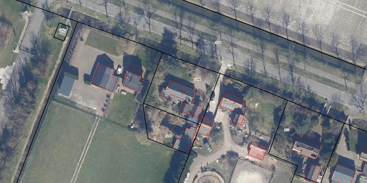 Het perceel waarop Zuiderweg 46-a staat heeft een oppervlakte van 994 m². Dit is een groot perceel. De perceeloppervlakte wordt geregistreerd door het Kadaster. Gedetailleerde informatie over de maten van dit perceel kunt u vinden in het rapport Kadastrale kaart met maatvoering van Zuiderweg 46-a.