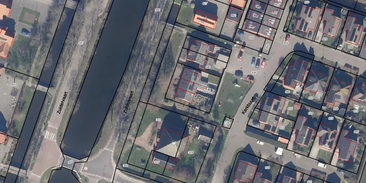 Het perceel waarop Kerkbuurt 24 staat heeft een oppervlakte van 523 m². Dit is een groot perceel. De perceeloppervlakte wordt geregistreerd door het Kadaster. Gedetailleerde informatie over de maten van dit perceel kunt u vinden in het rapport Kadastrale kaart met maatvoering van Kerkbuurt 24.