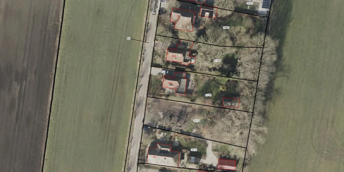 Het perceel waarop Langesloot 11-B staat heeft een oppervlakte van 1100 m². Dit is een zeer groot perceel. De perceeloppervlakte wordt geregistreerd door het Kadaster. Gedetailleerde informatie over de maten van dit perceel kunt u vinden in het rapport Kadastrale kaart met maatvoering van Langesloot 11-B.