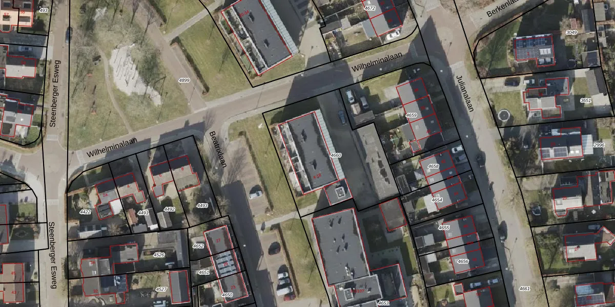 Beatrixlaan 12 is gelegen op kadastraal perceel ZWD02B4660. Deze kadastrale aanduiding is uniek en wordt gebruikt door het Kadaster om eigendomsrechten en andere zakelijke rechten vast te leggen. Het perceel maakt onderdeel uit van de kadastrale gemeente Zuidwolde.