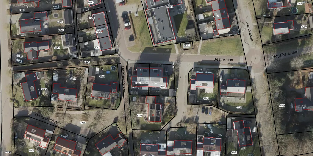 Beatrixlaan 13 is gelegen op kadastraal perceel ZWD02B4643. Deze kadastrale aanduiding is uniek en wordt gebruikt door het Kadaster om eigendomsrechten en andere zakelijke rechten vast te leggen. Het perceel maakt onderdeel uit van de kadastrale gemeente Zuidwolde.