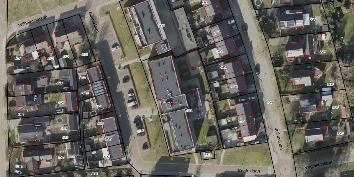 Beatrixlaan 2-5 is gelegen op kadastraal perceel ZWD02B4653. Deze kadastrale aanduiding is uniek en wordt gebruikt door het Kadaster om eigendomsrechten en andere zakelijke rechten vast te leggen. Het perceel maakt onderdeel uit van de kadastrale gemeente Zuidwolde.