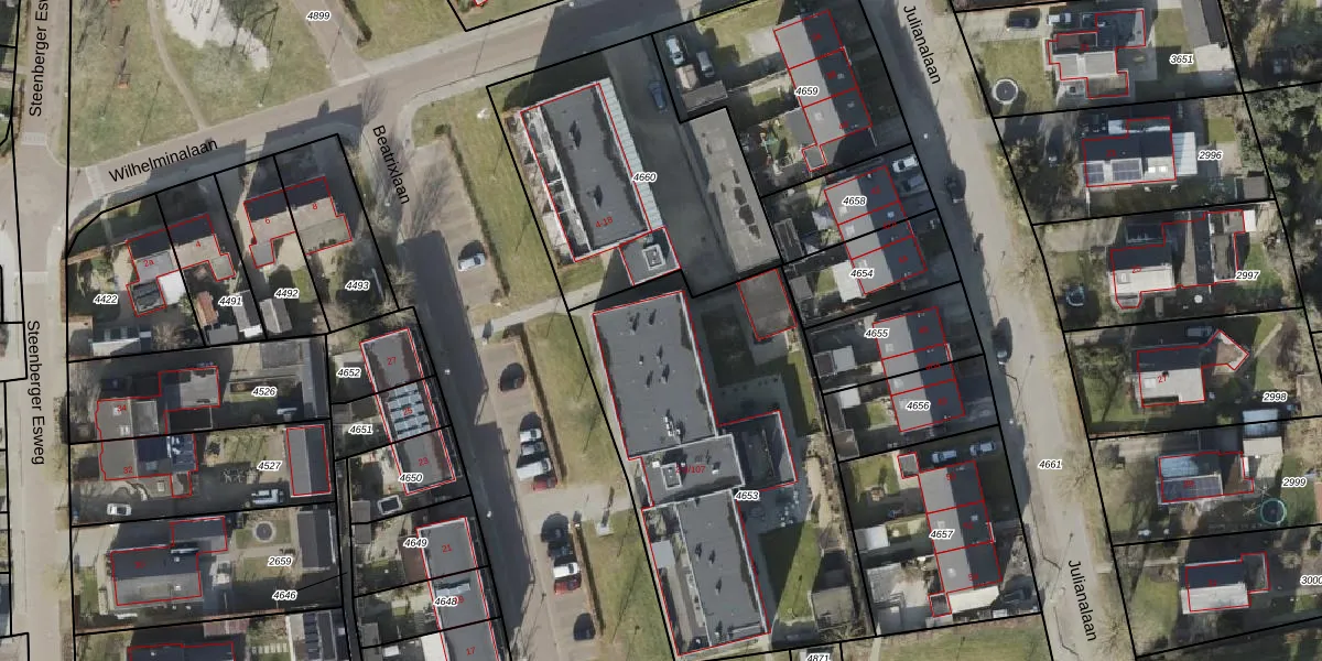 Beatrixlaan 2-13 is gelegen op kadastraal perceel ZWD02B4653. Deze kadastrale aanduiding is uniek en wordt gebruikt door het Kadaster om eigendomsrechten en andere zakelijke rechten vast te leggen. Het perceel maakt onderdeel uit van de kadastrale gemeente Zuidwolde.